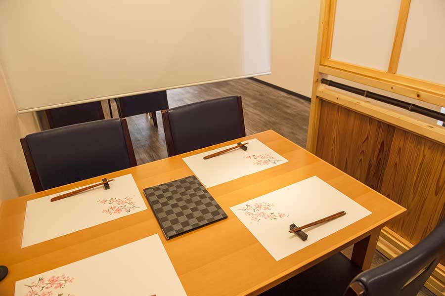 26席 (カウンタ―、テーブル3卓、完全個室1部屋) |