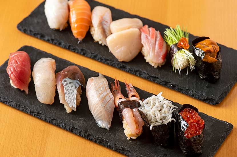脂の乗った鮮魚や地元農家より仕入れた野菜、そして希少な黒毛和牛や本マグロ。季節の移ろいに合せ、その時期に最も美味しい食材をお客様にご提供することが「善」のスタイル。鮨職人の経歴もある店主が丹精を込めた品々をご用意しております。店内は席を詰めすぎずあえてゆったりした空間を確保。8名様をご収容可能な個室も完備しており、ご接待や記念日など特別なシーンにおいてもぜひご利用ください。